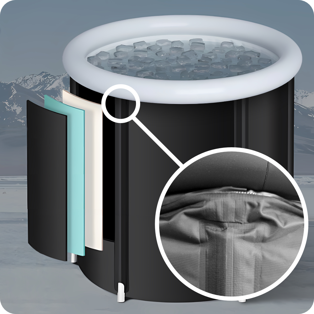 Trijų sluoksnių audinio ledo vonia – patvari medžiaga ir sustiprinti kraštai.