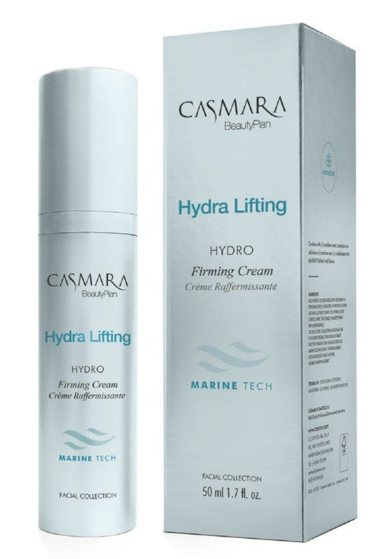 Hydra Lifting Hydro Firming Cream , tinka brandžiai, išsausėjusiai veido odai – Casmara stangrinantis veido kremas sukurtas kasdieniam komfortui ir odos išvaizdos gerinimui. Tinka kasdieniam naudojimui, kai norisi subalansuotos drėgmės ir komforto. Svarbiausi komponentai: „Wakame“ jūros dumblių ekstraktas – suteikia odą pakeliantį efektą bei užtikrina odos stangrumą bei elastingumą. Intensyviai drėkina odą.; JUVENESSENCE ® – pasižymi intensyviu odą stangrinančiu poveikiu ir padeda sumažinti esamus odos senėjimo požymius.. Naudojimas: tepkite priemonę ant švarios veido ir kaklo odos ir įmasažuokite kol pilnai įsigers. Rekomenduojama naudoti kartu su Casmara „Marine Plasma Fresh Serum“ odą stangrinančiu serumu.