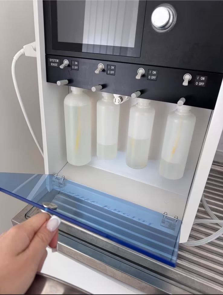 Tai profesionalus veido odos priežiūros aparatas, sukurtas atlikti kompleksinę procedūrą vienu protokolu: giluminį porų valymą, odos paviršiaus atnaujinimą, intensyvų drėkinimą ir aktyviųjų medžiagų įvedimą į gilesnius odos sluoksnius be adatų.